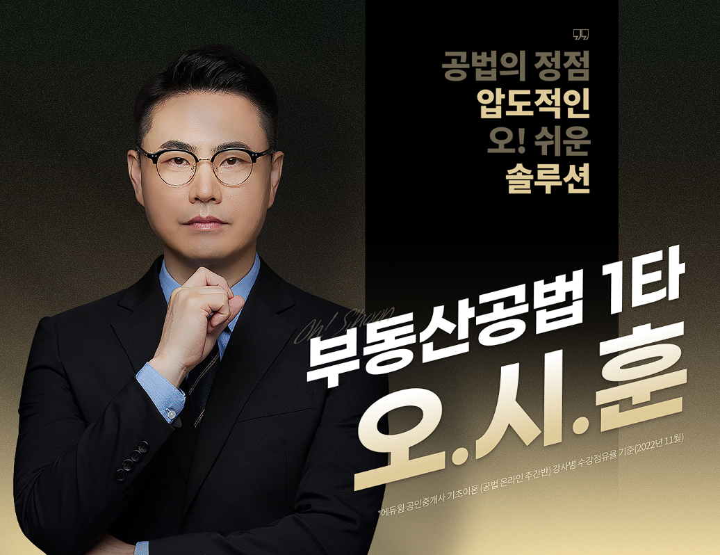 공법은 공인중개사 과목 중 난이도가 가장 높고 범위가 가장 넓은 과목이기에 기초부터 차근히 공부할 것을 추천드립니다. 여러 강사 분들이 계시지만 그 중에도 오시훈 교수님을 추천드리는 이유는 이 기초강의를 이유로 들고 싶습니다.