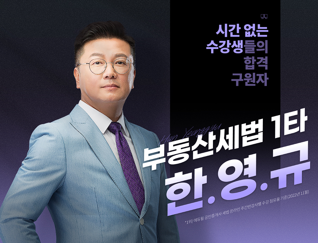 한영규 교수님은 정말 얘기할 필요도 없이 훌륭한 교수님입니다. 기본강의와 핵심이론 & 기출문제 강의를 반드시 잘 따라가시기 바랍니다. 교수님의 가장 좋은 특징은 수업 주차가 바뀔때마다 전 범위 복습을 해주시는 겁니다. 다른 공부를 하느라 복습을 못하신 분들은 교수님 수업 주차의 첫 강만 보아도 복습이 될겁니다. 또 교수님은 예시를 많이 들어주시는데 그러한 예시들은 모두 출제가 되었던 사례들로 수업 이해에 큰 도움이 됩니다. 세법 16문제는 한영규 교수님 수업을 통해 준비하시길 바랍니다.