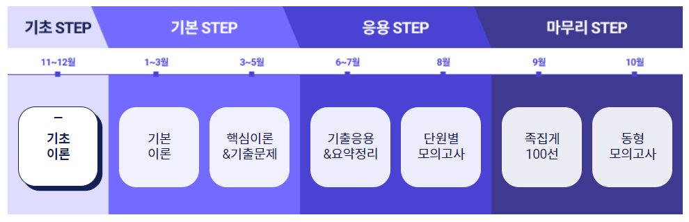 1차 과목, 2차 과목의 연간 학습플랜은 모두 동일하며 다음과 같습니다.